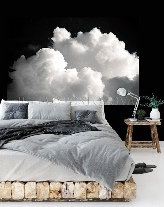 80 Cloud Painting Black And White Cloud Wall Art Etsy